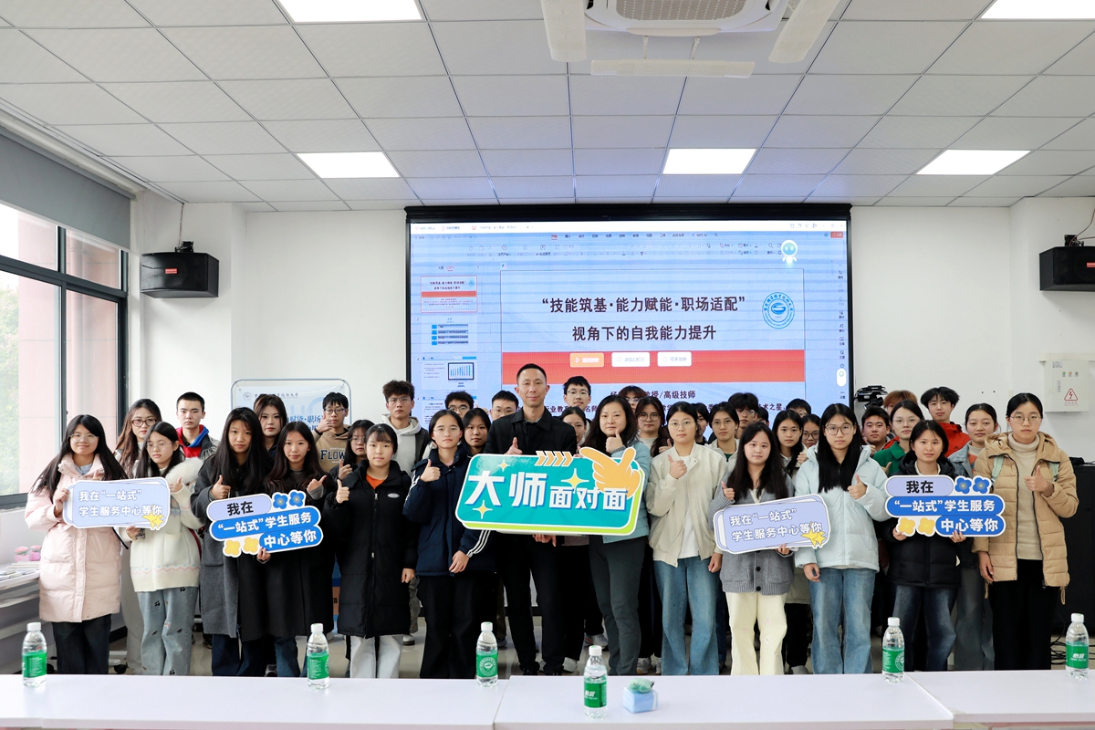 11月21日下午14时,“一站式”学生社区特邀中国机械行业教育教学名师、璧山区技能大师(车工)工作室负责人杨阳副教授,于图书馆塔楼A208成功举办第三期“大师面对面”专题讲座。本次活动以“技能筑基・能力赋能・职场适配”视角下的自我能力提升为主题,系统阐述了新时代背景下职业院校学生应如何构建核心竞争力,实现从校园到职场的顺利过渡。