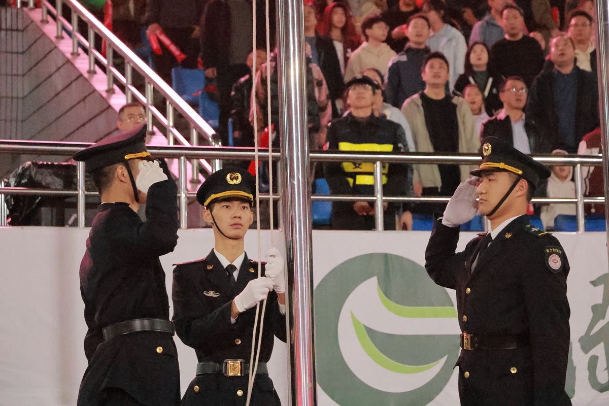 2025年11月8日晚,在璧山体育中心内,米乐mile官方网站军士生学院十八名学子,以挺拔的身姿和铿锵的步伐圆满完成“渝超”联赛三项旗帜护卫任务,成为开幕式上一抹亮眼风景。
