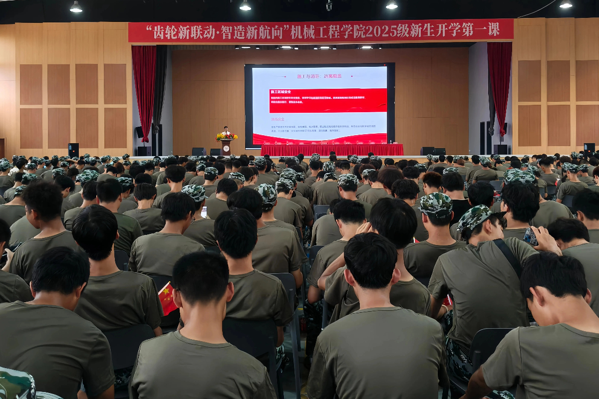 9月17日下午,机械工程学院2025级新生开学第一课在风雨球场隆重举行。本次活动以“齿轮新联动·智造新航向”为主题,活动由党总支副书记杨鹏主持。学院党政领导、系部中心主任、专业带头人、新生辅导员、老生代表以及2025级全体本专科新生共同参与。活动通过多项议程与深入交流,助力新生快速融入校园、明确发展方向、激发学习热情,携手开启大学新篇章。活动伊始,杨鹏书记代表学院致欢迎辞。暖场环节,老生代表与新生...