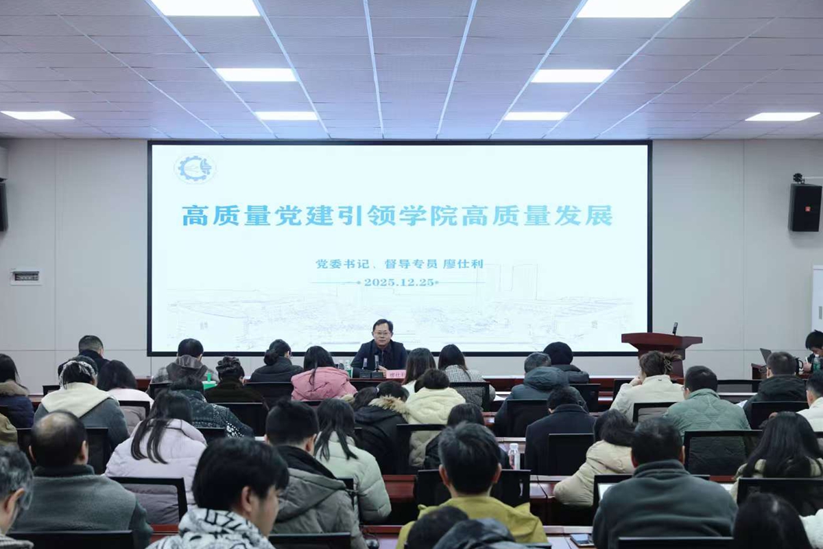 为深入贯彻落实新时代党的建设总要求,以高质量党建引领学校事业发展提质增效,巩固拓展主题教育成果,切实把党建优势转化为发展优势,筑牢本科教学合格评估工作根基。12月25日下午,学校党委书记廖仕利在F107教室给电气与电子工程学院全体教师开展了"高质量党建引领学院高质量发展"专题培训。