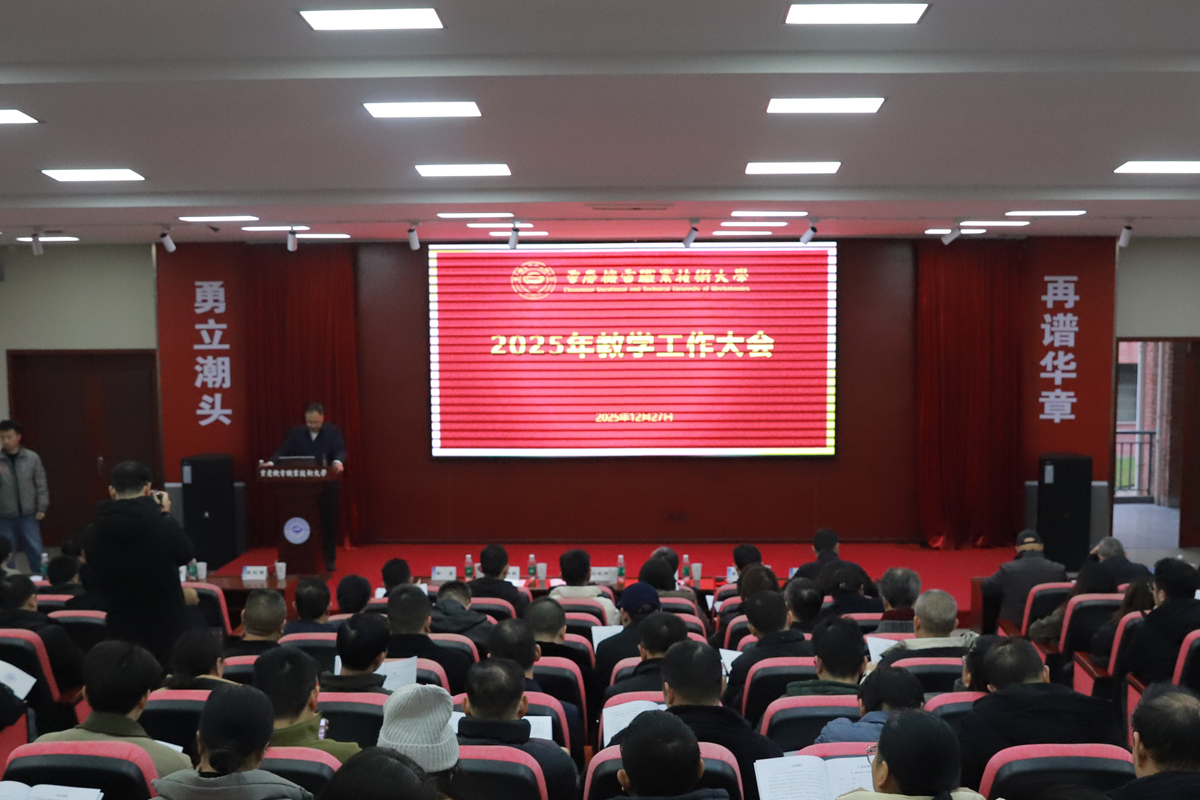 2025年12月27日,学校隆重召开升本以来首次高规格教学工作大会。执行理事长周泽扬、校长石晓辉、党委书记廖仕利等校领导、中层干部与骨干教师代表200余人共同参会,会议由常务副校长徐益主持。