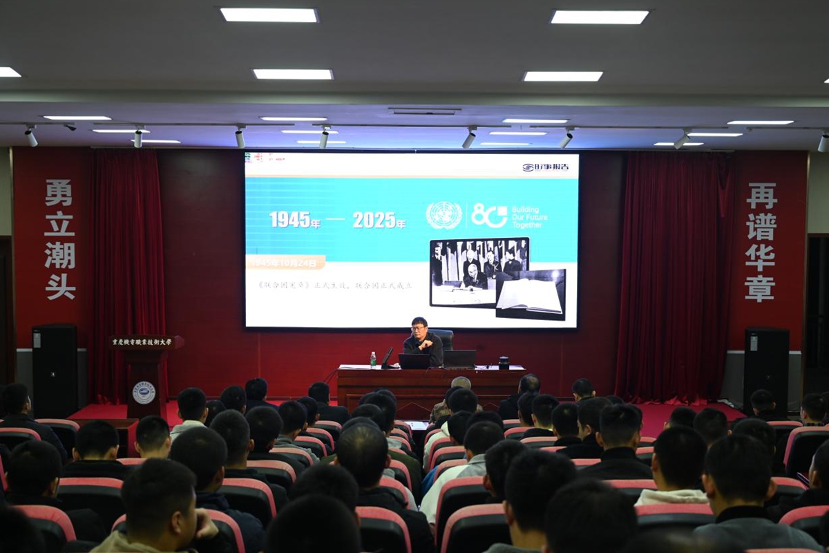 12月18日晚,学校党委副书记、副校长何超以“践行多边主义,完善全球治理”为主题,为定向培养军士讲授了一堂生动的形势与政策课。授课旨在深化大家对当前国际格局的理解,强化使命担当,回应大家对成长发展的现实关切。为让授课内容更加贴近学生思想实际,何超在课前作了充分准备。他专门收集梳理了大家普遍关注的国际热点问题、未来职业发展路径及相关政策动向,通过细致调研准确把握学生思想脉搏,确保了授课的针对性与实效...