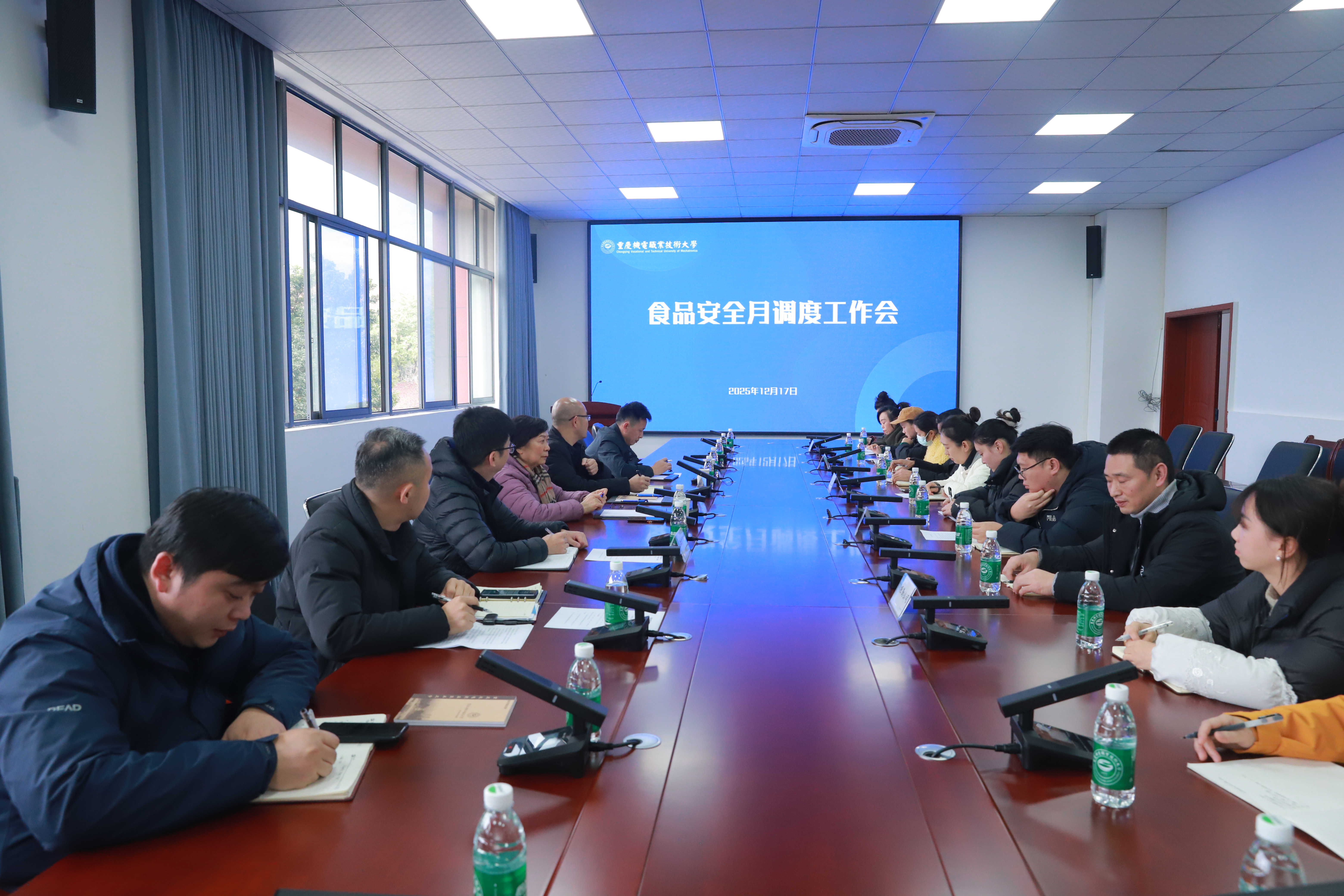 民以食为天,食以安为先,安以质为本,质以诚为根,12月17日下午,学校后勤管理处在A207会议室组织召开12月食品安全“月调度”会。学校食品安全总监、监事会监事长、校区建设指挥部总指挥程淑明出席会议并讲话,璧山区市场监督管理局副局长伍山峡,餐饮管理科科长伍强,后勤管理处处长魏豫,学校各食品经营单位负责人及全体食品安全员参加会议。后勤管理处副处长吴成权主持会议。