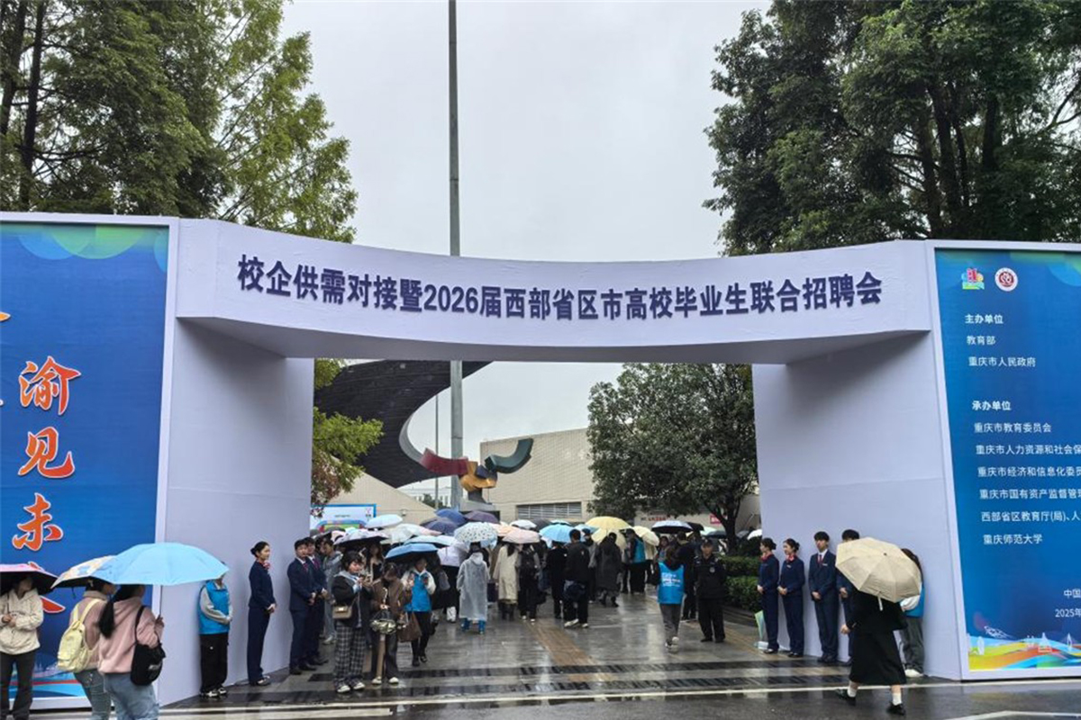 为深入贯彻党中央、国务院关于做好高校毕业生就业工作重要决策部署,抢抓秋季关键窗口期,11月7日,学校党委副书记、副校长何超带领招就处全体、各学院毕业班辅导员及学校2026届毕业生230余名,参加了由教育部、重庆市人民政府主办,重庆市教委、人社局、经信委、国资委、西部省区教育厅(局)及人社厅(局)、重庆师范大学共同承办的“金秋启航 渝见未来”校企供需对接暨2026届西部省区市高校毕业生联合招聘会。