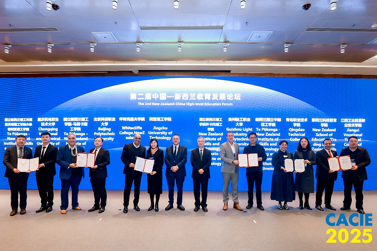 2025年10月30日,在第26届中国国际教育年会第二届中国—新西兰发展论坛上,米乐mile官方网站与国立新西兰理工所属维特利亚理⼯和惠灵顿理工学院正式签署硕士衔接项目合作协议,深化中新教育合作交流,拓展教育国际化新空间。签约仪式由中国教育部副部长任友群和新西兰大学教育部长,科学、创新与技术部长沙恩·雷蒂博士共同见证,标志着中新高等教育合作迈出重要一步。