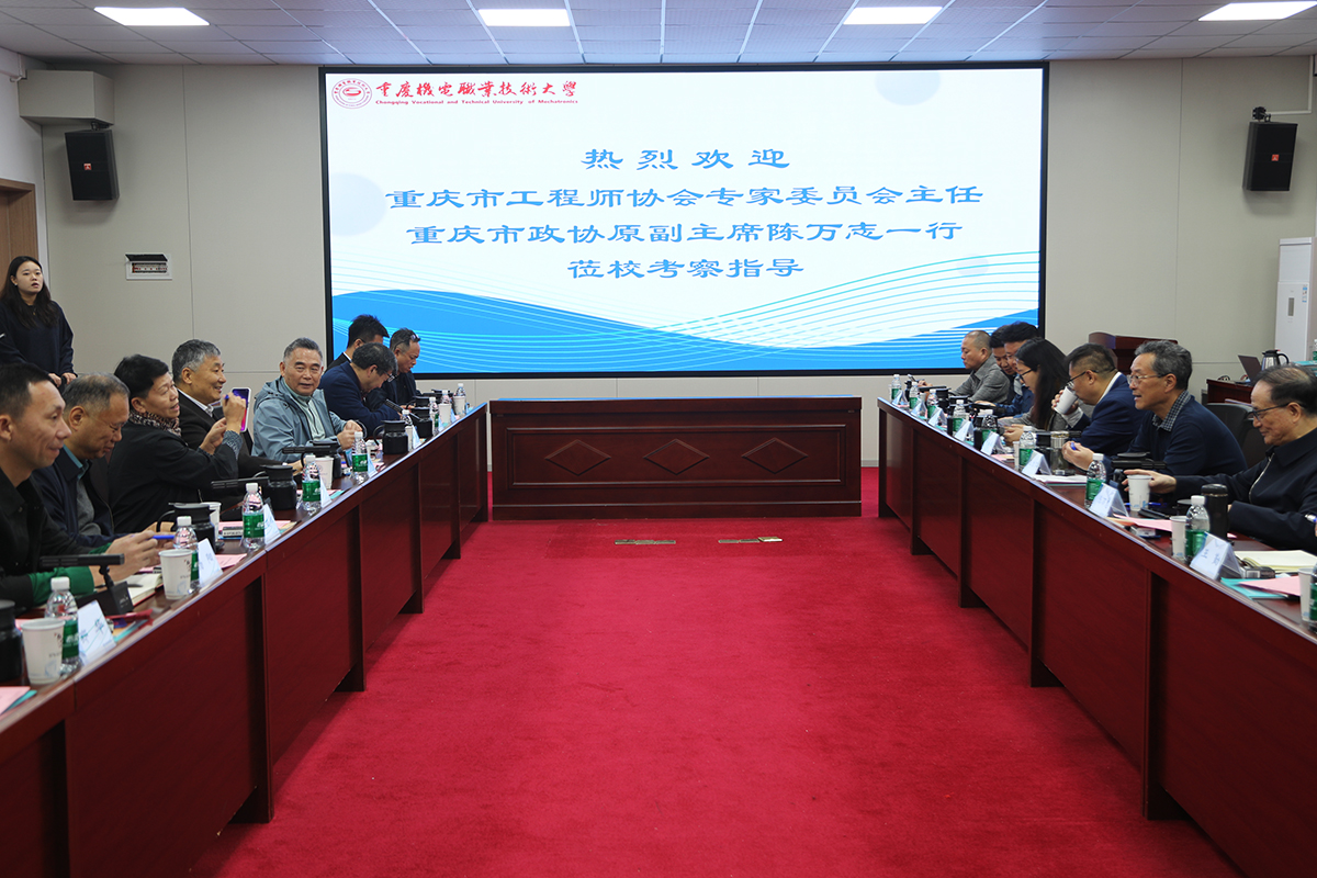 10月29日,重庆市工程师协会专家委员会主任、重庆市政协原副主席陈万志、协会理事长王力军、常务副理事长王勤等一行莅临学校参观指导。学校理事长吕中、执行理事长周泽扬、校长石晓辉、校长助理顾家弟,科研与合作发展处、招生就业处、机械工程学院、人文与艺术学院、继续教育学院负责人陪同参观并参加座谈会。