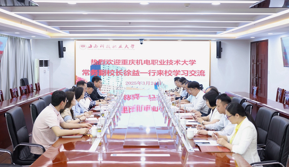 为深化本科层次职业教育试点改革,推进本科教学工作合格评估,提升学校评建工作效果,促进学校高质量发展,2025年3月24日-25日,徐益常务副校长一行7人,对海南科技职业技术大学进行了为期2天的考察学习。海南科技职业大学校长张洪田教授陪同学校考察团参观了海科大化学与材料工程学院、信息工程学院、设计学院、机电工程学院、海事学院、财经学院等二级学院,并主持两校交流座谈会。