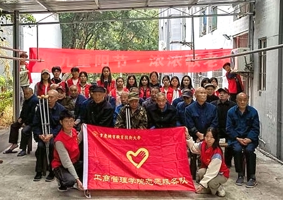10月11日,学校工商先锋志愿服务队组织开展“九九重阳节,浓浓敬老情”关爱敬老院老人志愿服务活动。19名工商青年志愿者前往重庆市璧山区青杠街道中心敬老院,与老人共度重阳节。