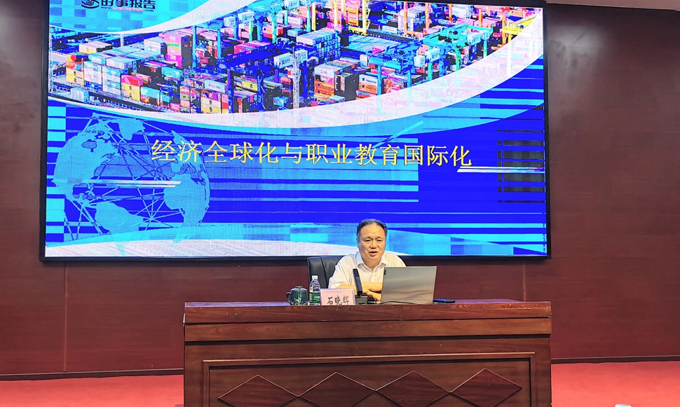 为进一步深化师生思想政治教育,切实提高思政课教育教学效果,根据校领导为师生讲授“形势与政策”课相关安排, 6月14日下午,学校校长石晓辉以《经济全球化与职业教育国际化》为主题为全校教职工讲授“形势与政策”课。