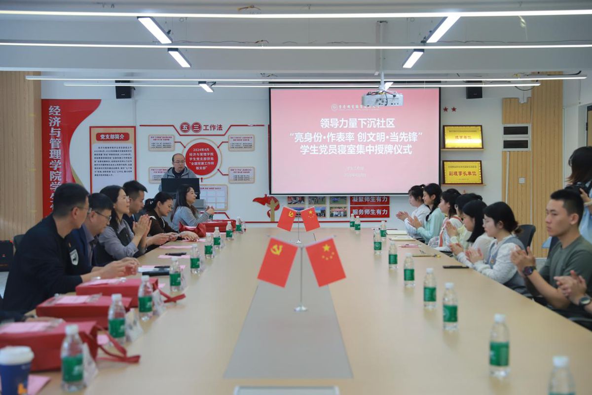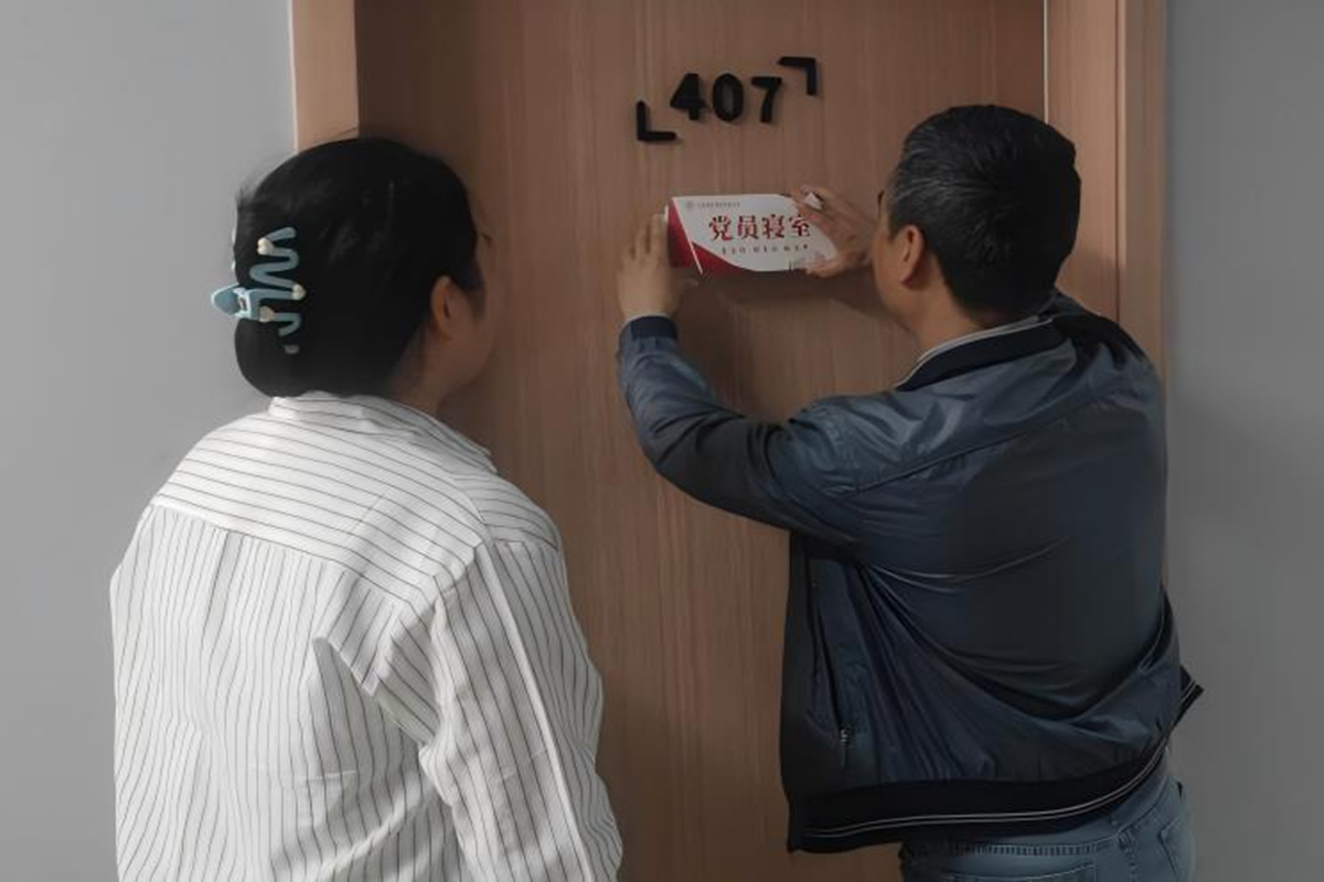 4月9日,经济与管理学院开展学生党员寝室挂牌活动,为12个党员宿舍统一悬挂“党员寝室”标识,以 “亮身份、明责任、作表率”的实际行动,推动党建工作与学生社区生活深度融合。经济与管理学院党总支书记李锐、辅导员代表及学生党员代表参加活动。